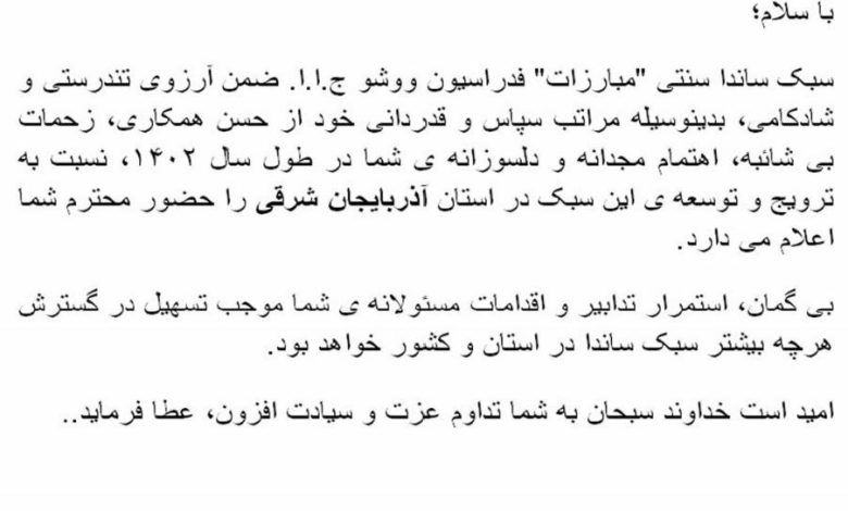 به دنبال کسب مقام سومی سبک ساندا سنتی آذربایجان شرقی در کشور و همچنین بیشترین آمار ورزشکاران سازمان یافته این سبک،
