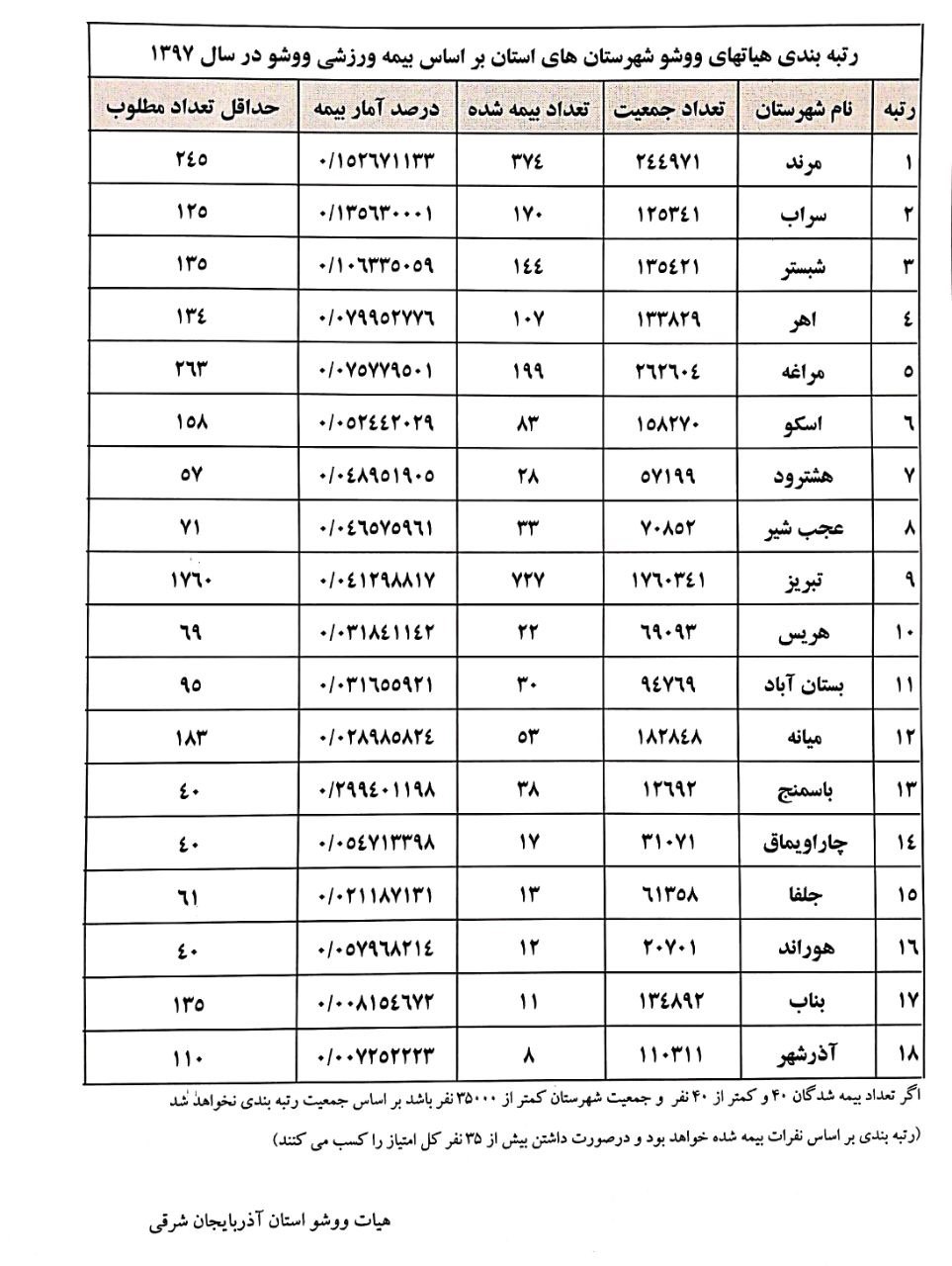 سیمای عملکرد ووشو استان آذربایجان شرقی