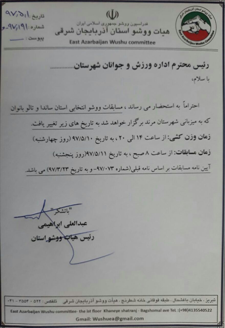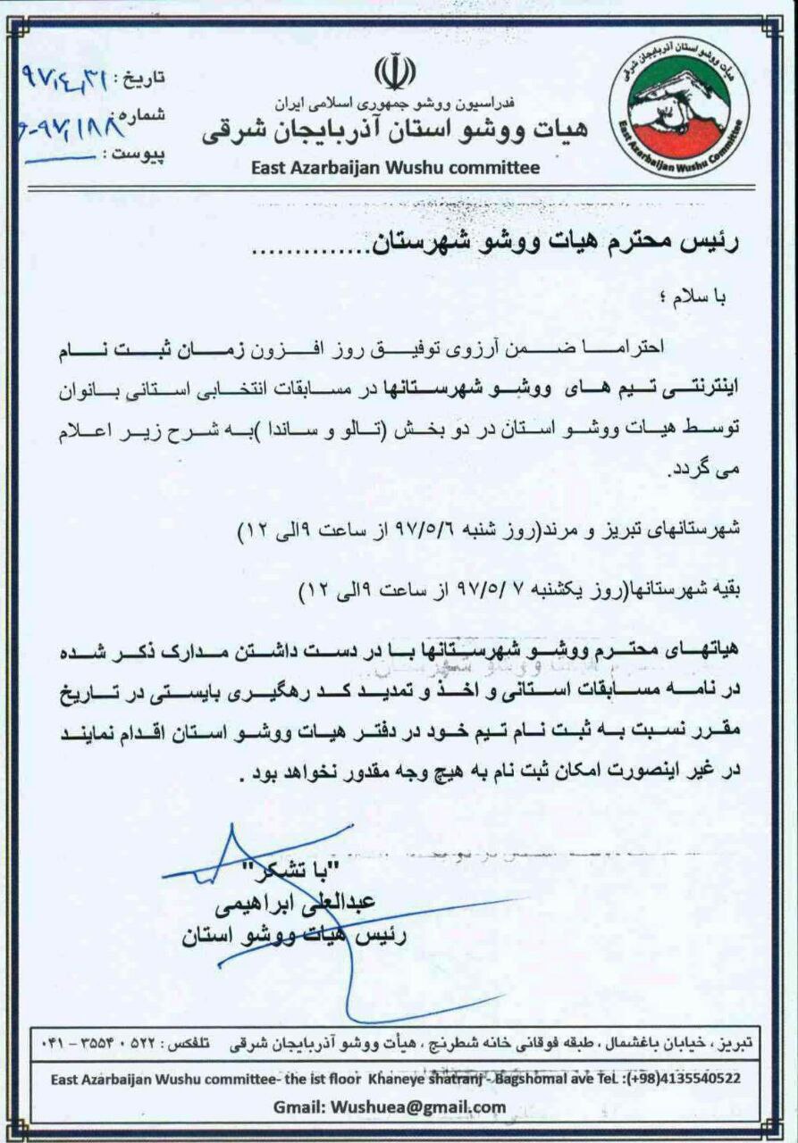 هیات ووشو استان آذربایجان شرقی رتبه نهم کشور را به خود اختصاص داد
