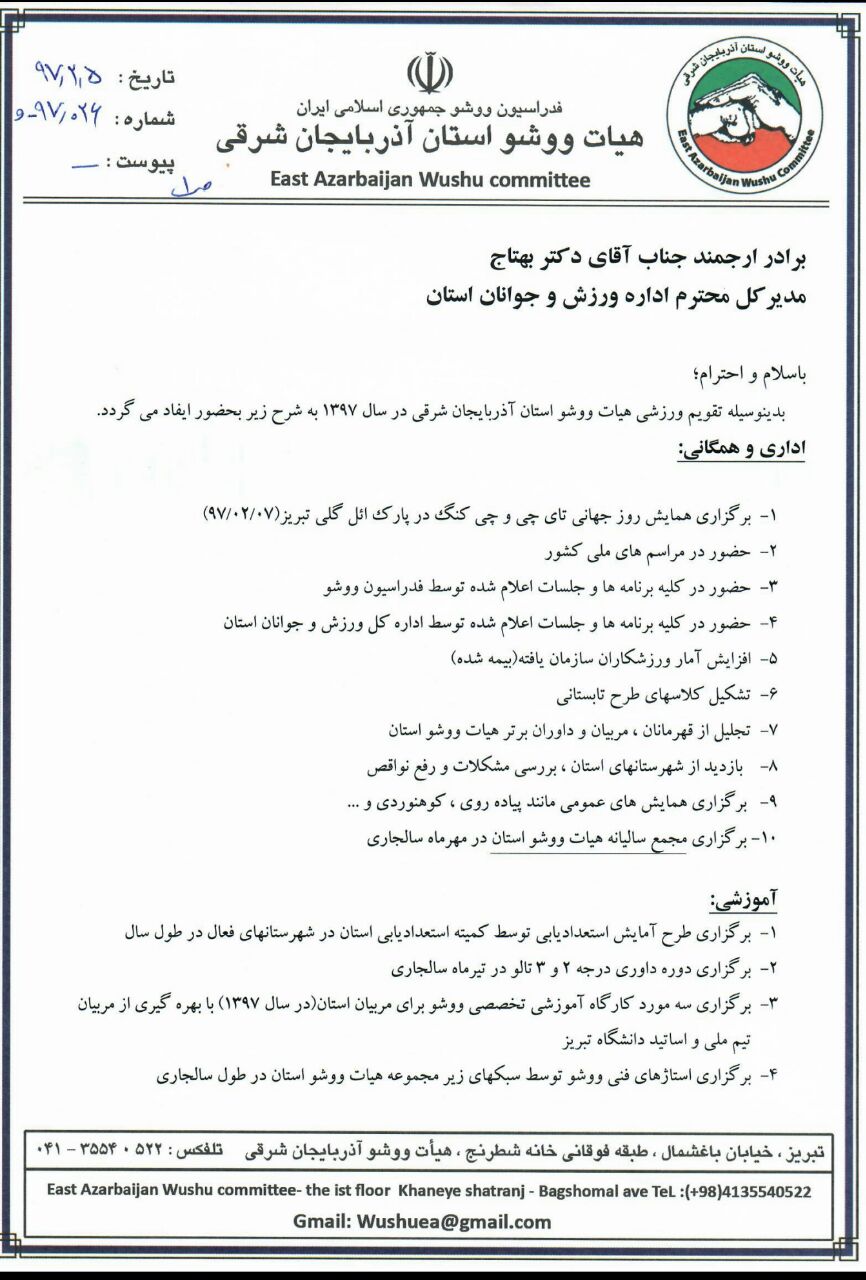 دوره مربیگری درجه دو ووشو ۹۶/۱۱/۲۳ در تبریز برگزار خواهد شد